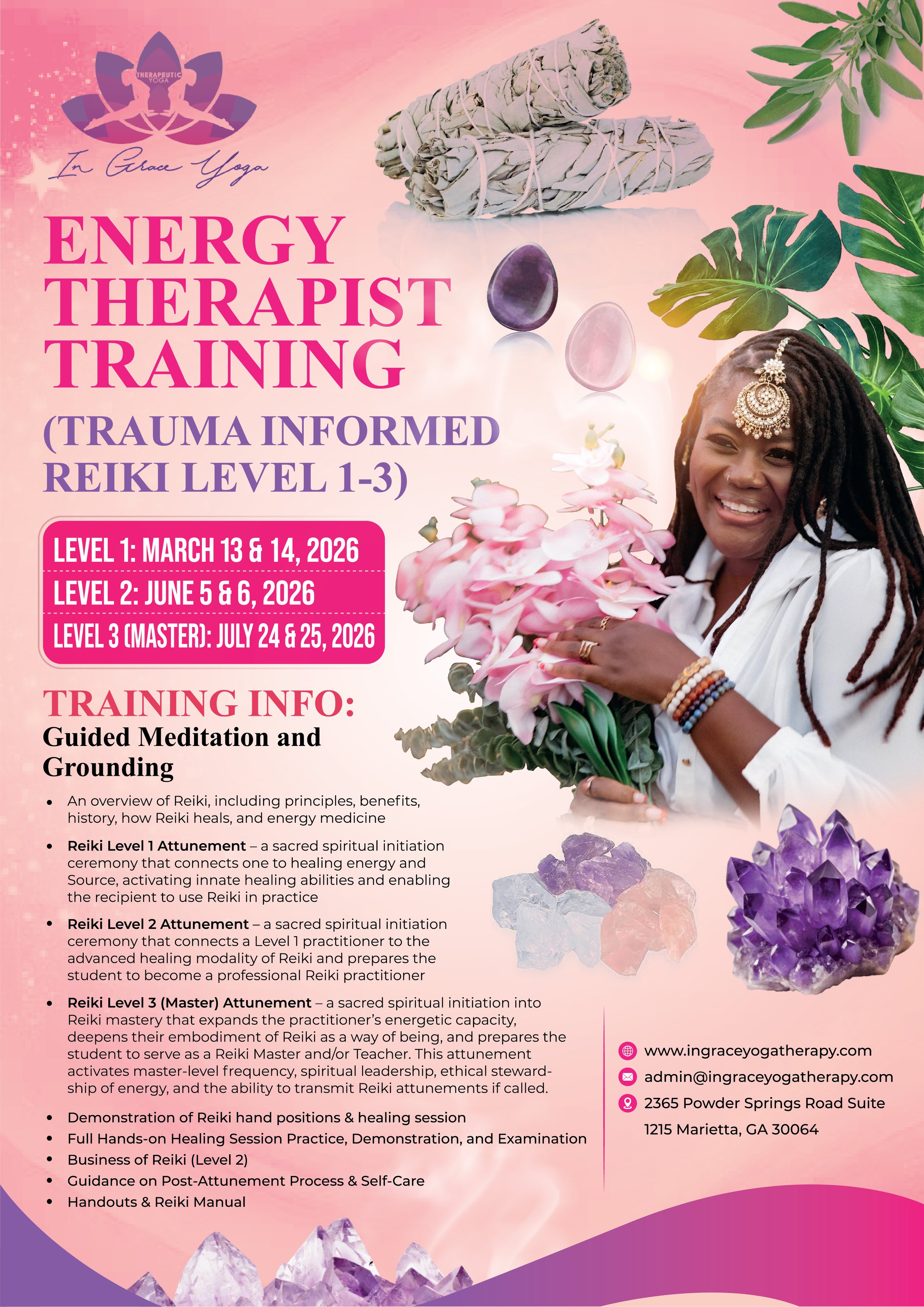 This training was created to provide professionals with tools and trauma education to help reduce re-victimization of students in both non-clinical and clinical settings. We will discuss the neurological impact of trauma on an individual’s brain, communication skills, and body awareness. The training’s context will provide education to become a trauma-informed facilitator and a more effective leader who can assist students to feel safe in their bodies. It is designed to support professionals who want to expand their current practice by incorporating restorative health techniques such as meditation, breath-work cues, yoga postures (asana), and the use of aromatherapy oils to balance the central nervous system. Participants will gain new insights and skills to assist clients in managing stress and anxiety, and help survivors to show up as their full selves. This training is for individuals currently working with vulnerable populations including but not limited to trauma survivors of any kind. There is also a special consideration for persons interested in supporting clients, family, and community members with reversing the effects of the multi-systemic impact of complex trauma, as well as those who are interested in delving into the ancient practice of Reiki and breath-work to facilitate holistic change and healing.